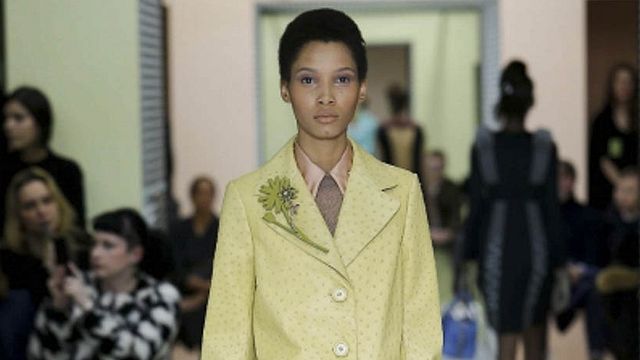 La palette dei colori è tenue e dà la sensazione di essere catapultati in un film di Wes Anderson - che era stato d'ispirazione anche per Gucci - se non fosse per l'estrema contemporaneità dei materiali utilizzati: il neoprene e il jersey, principalmente, che sostituiscono i broccati e le tappezzerie utilizzate la scorsa stagione. Il guardaroba è quello codificato - completi giacca pantalone, mini-abiti svasati, il cappotto di tweed - ma Miuccia Prada gioca con i ruoli, a modo suo, scegliendo un cast di modelle giovanissime che sembrano portare gli abiti della madre.