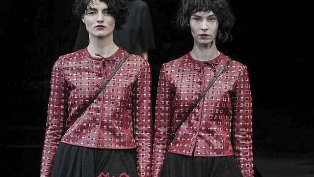 Cappotti e capispalla sono importanti e si portano con una spilla a farfalla, preferibilmente rossa, appuntata con nonchalance sulla spalla. Non mancano i materiali preziosi, dal mohair al velluto, così come sono immancabili gli ensemble da sera in total black. Le modelle portano caschetti bruni spettinati ad arte mentre sul viso campeggiano rossetti scuri, trend confermato anche in questa stagione.