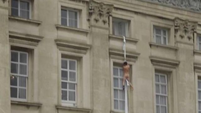 Durante il cambio della guardia succede l'imprevedibile: da una finestra di Sua Maestà si cala con un lenzuolo un uomo quasi completamente nudo se non fosse per il calzino che indossa al piede sinistro. Nella sua improbabile "fuga" da Buckingham Palace perde la presa e a un certo punto precipita al suolo. Il video registrato dai turisti presenti e subito pubblicato online, ha ricevuto una marea di visualizzazioni ma non è ancora chiaro se si tratti di uno scherzo costruito a tavolino, di un set cinematrografico o di un'intrusione non autorizzata dentro la residenza dei reali inglesi.