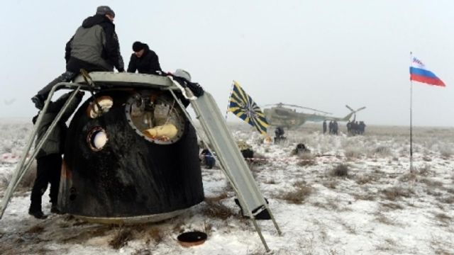 La capsula Soyuz con a bordo i due cosmonauti russi Alexander Samokutayev ed Elena Serova ed l'astronauta americano Barry Wilmore è atterrata in Kazakistan. I tre, che hanno trascorso quasi sei mesi a bordo della Stazione spaziale internazionale, sono atterrati a sudest della città di Jezkazgan: nonostante la scarsa visibilità sulla zona, le squadre di recupero sono intervenute in pochi minuti e nel giro di mezz'ora hanno estratto gli astronauti.