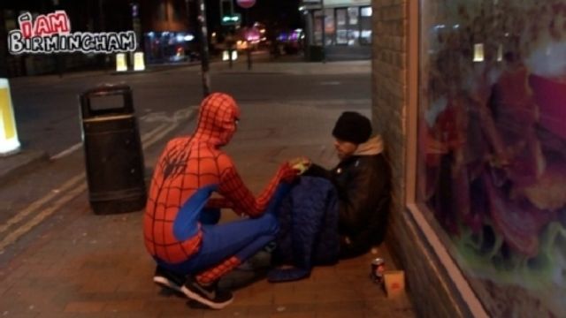 Un nuovo eroe è arrivato in città, almeno a Birmingham. Qui infatti nottetempo per le strade si aggira un novello Spiderman. La sua missione? Portare cibo ai senzatetto. "Faccio volontariato da anni e da parecchio tempo passo le sere portando cibo ai clochard - ha raccontato l'Uomo Ragno -. Prima, però, nessuno ci faceva caso. Ora che invece giro vestito da Spiderman, molti si incuriosiscono e spero di sensibilizzare i miei concittadini su questo problema sociale". (foto da iambirmingham.co.uk)
