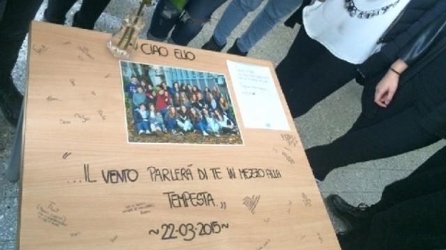 "Il vento parlerà di te in mezzo alla tempesta": è il messaggio d'addio scritto dai compagni di scuola di Elio Bonavita sul suo banco, con le firme di tutti gli amici. Il 15enne, rimasto ucciso domenica in un incidente stradale provocato da un'auto pirata, frequentava l'istituto Mosè Bianchi di Monza. Intanto la madre, ricoverata all'ospedale Niguarda di Milano, continua a essere in condizioni "critiche ma stazionarie".
