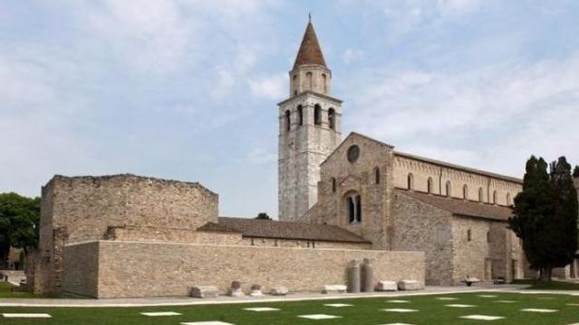 I mosaici della Basilica, tesoro Unesco - Simbolo di quella potenza spirituale è la sua antica, magnifica, severa basilica, dichiarata patrimonio dell'Umanità dall'Unesco, che conserva nei suoi più antichi mosaici le tracce di quel periodo di transizione in cui il cristianesimo non si era ancora affermato e si sentivano forti le influenze dello gnosticismo e di religioni orientali come il culto di Mithra. Fiancheggiata da campanile alto 73 m e dal battistero e preceduta dalla cosidetta chiesa dei pagani , la basilica ha il pavimento interamente decorato da splendidi mosaici del IV secolo, esempio unico in Occidente – per la complessità dei simboli raffigurati e la sua estensione- d'arte musiva paleocristiana: con i suoi 760 mquadrati di rappresentazioni bibliche di magnifica fattura , è il più vasto nel suo genere d'Europa. La chiesa conserva al suo interno altri tesori d'arte , gli affreschi della volta dell'abside (XI sec.), la cripta sotto il presbiterio sopraelevato decorata con affreschi del XII sec, la cripta degli scavi con i mosaici della chiesa di Teodoro del IV sec, raffiguranti scene campestri e complessi simboli religiosi.