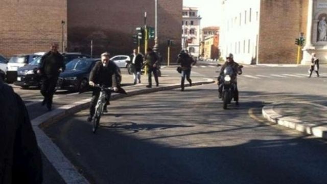 © ansa|Il neo titolare delle Infrastrutture, Graziano Delrio, arriva al ministero in bicicletta e pubblica le foto su Twitter