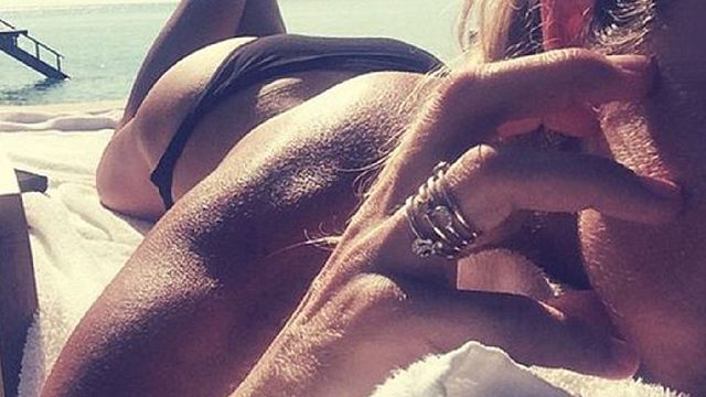 Stesso mare per Eleonora Pedron, compagna di Max Biaggi. Magra e con la pelle color ambra, si lascia immortalare in tutta la sua carica erotica sdraiata sul lettino. Lato B ben scolpito e fianchi modellati per l'ex Miss Italia che non mostra mai il viso...