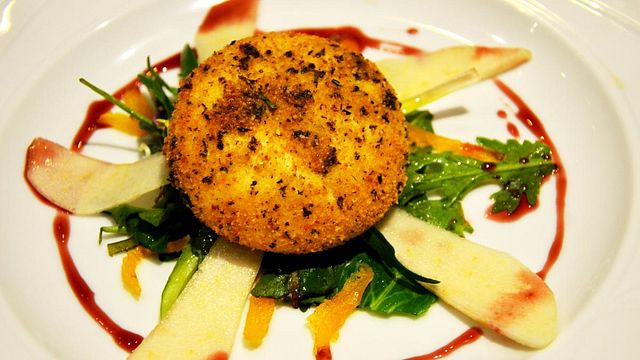 LA RICETTA: IL TOMINO AL TARTUFO - Preparate una riduzione al vino cotto cuocendo per 2 ore a fuoco lento 800 ml di vino rosso, 2 pere e 2 mele cotogne, 10 chiodi di garofano, 4 foglie di alloro, 50 gr. di zucchero, sino ad ottenere un composto cremoso. Prendete il tomino, passatelo nell'uovo e nel pan grattato, precedentemente aromatizzato al tartufo e alle erbe aromatiche; lasciate riposare per un'ora. Lavate un po' di misticanza, preparate un carpaccio di pere tagliando 120 gr di frutto a fette sottili, tagliare a julienne 120 gr. di albicocche secche. Dorate il tomino 2 minuti per lato a fuoco medio. LEGGI LA RICETTA PASSO PER PASSO.
