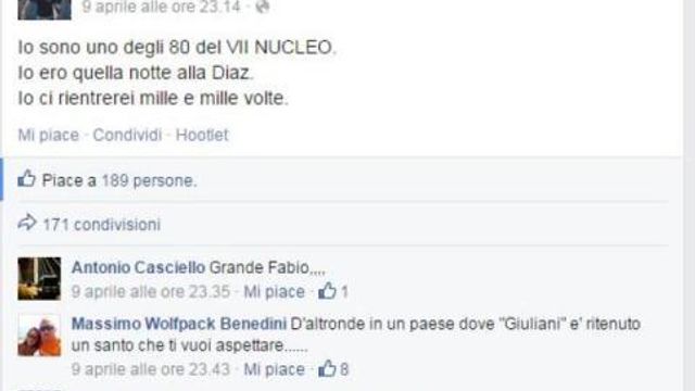 "Le mie parole sono state travisate. Sono stato chiamato ad un'operazione di ordine pubblico alla quale sono intervenuto". Nonostante la bufera che gli è piovuta addosso dopo il post su Facebook, Fabio Tortosa, agente che partecipò alle operazioni alla Diaz al G8 di Genova, non fa marcia indietro: "Critiche incomprensibili". "Rifarei tutto alla Diaz, noi sappiamo la verità", le frasi che hanno suscitato polemiche.
