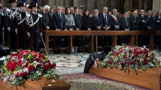 L'abbraccio di Milano - In occasione dei funerali di Stato, il Duomo di Milano ha accolto una grande folla di autorità, cittadini, parenti, amici e familiari delle vittime. Sopra le bare sono state appoggiate le toghe del magistrato e del legale. I familiari, dopo aver incontrato il presidente della Repubblica Sergio Mattarella nella cripta, hanno accolto e accompagnato i feretri fino all'altare. Presenti alla cerimonia, oltre a Pisapia, anche il presidente della Regione Lombardia Roberto Maroni, il vicepresidente del Csm Giovanni Legnini, il presidente della Corte d'Appello di Milano Giovanni Canzio e l'a.d. del Milan Adriano Galliani. Ha assistito alle esequie anche Stefano Verna, il commercialista rimasto ferito nella sparatoria.