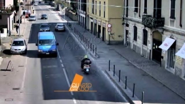 La trasmissione di Retequattro, "Quarto Grado", ha mostrato le immagini esclusive di Claudio Giardiello in sella allo scooter con il quale si è dato alla fuga lo scorso 9 aprile 2015, dopo aver sparato e ucciso tre persone nel Tribunale di Milano. Grazie a queste immagini, provenienti dalle telecamere di sicurezza della polizia stradale, l'uomo è stato identificato a Brugherio. L'avvistamento ha poi permesso la cattura del killer.
