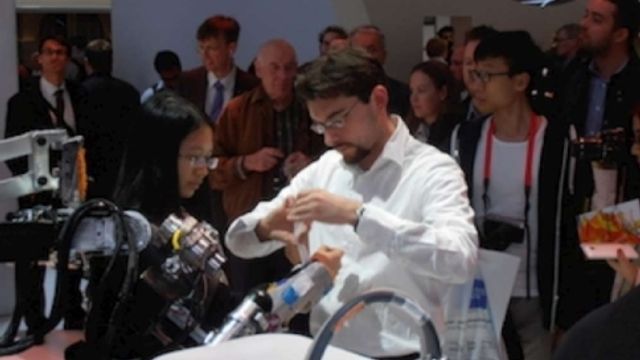 Doppia risposta - Il nuovo progetto di "robotica indossabile" sviluppato nel laboratorio guidato da Nicola Vitiello, è stato presentato in Germania alla Fiera di Hannover, dove ha ricevuto il premio "Innovation Award 2015". L'idea alla base di ReTeLINK - questo il nome del dispositivo - è di utilizzare un esoscheletro indossabile per permettere a un utente di muovere un altro braccio robotico, che fisicamente si trova altrove ed è connesso attraverso internet. La persona con l'esoscheletro "trasmette" i suoi movimenti al robot manipolatore. Quest'ultimo li riproduce e, se incontra un ostacolo, può trasmettere a sua volta le "deviazioni" all'esoscheletro.