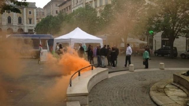 Il leader della Lega Nord, Matteo Salvini, è stato accolto ad Ancona da una pioggia di uova, pomodori e bottiglie lanciati dai manifestanti dei centri sociali, che hanno anche acceso un fumogeno arancione e urlato "vattene, vergogna, fascisti". "Sono squadristi", ha replicato Salvini. Poco dopo, a Porto Recanati, il numero uno del Carroccio è stato "respinto" dai migranti e non è riuscito a entrare nel condominio multietnico Hotel House.