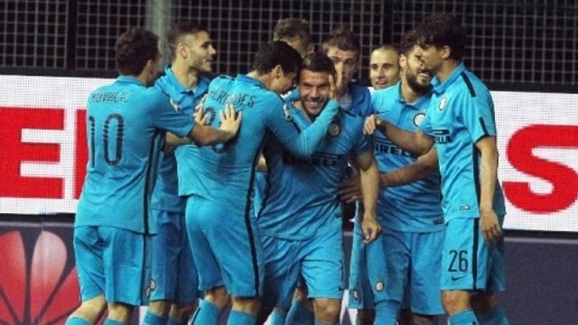 Nell'anticipo della 33a giornata l'Inter vince 2-1 contro l'Udinese e si porta a un punto dal 6° posto della Fiorentina. Nel primo tempo l'Inter fa la gara ma non sfonda, mentre i friulani rimangono in 10 per l'espulsione di Domizzi. A inizio segna Icardi (3') su rigore contestato. Dopo 2' pareggia Di Natale, al gol 205 in Serie A come Roberto Baggio. Rosso anche a Badu (proteste) e l'Inter trova la vittoria con il primo sigillo di Podolski (21').