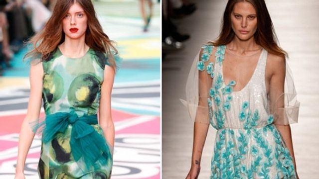 Anche il brand britannico Burberry Prorsum ha scelto lo stesso colore, questa volta giocando con l'effetto acquarello creato da sfumature diverse. Chloé punta poi sul color block, declinando il verde menta su un abito leggero, corto e dalle spalline sottili.