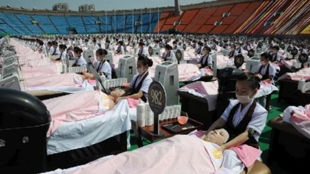 Mezz'ora di trattamento di bellezza con la classica maschera per il viso è valsa a mille donne cinesi e a mille estetiste un posto nel Guinness World Record. Allo stadio di Jinan, in Cina, è stato infatti stracciato il precedente primato registrato a Mumbai, in India, nel 2014, quando in 287 provarono in contemporanea a farsi più belle. Non solo maschere al viso: le protagoniste dell'impresa hanno potuto approfittare dell'occasione per pulizia del viso, idratazione e un bel massaggio.