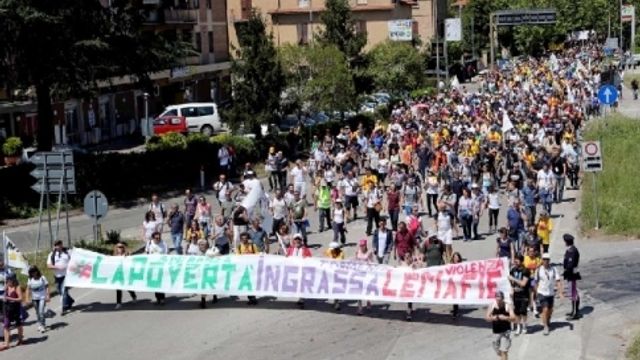 Grande folla alla marcia organizzata dal Movimento 5 Stelle da Perugia ad Assisi per chiedere il reddito di cittadinanza. "Questa è una iniziativa per i diritti e per la dignità di tutti i cittadini e non del Movimento 5 Stelle", dice Beppe Grillo aprendo la manifestazione. "Quel reddito è necessario - aggiunge - perché non possiamo fare finta che non ci sia un sistema economico agonizzante".