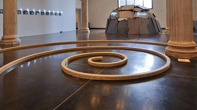 La mostra - Dai disegni su carta degli anni giovanili alla svolta del '68: l'esposizione dedicata al maestro dell'Arte povera inaugura nuovi spazi alle Gallerie dell'Accademia destinati all'arte contemporanea. "Città irreale" è una personale che si concentra sul tema del rapporto dell'uomo con lo spazio. Dominano i materiali preferiti dell'artista, in primis il legno che compone l'opera Senza titolo (Una somma reale è una somma di gente), in cui è protagonista il tavolo, poi ricorrente come struttura della socialità, del nutrimento e dello scambio. C'è poi il neon, presente in Impermeabile (1966) in cui i tubi luminosi incrociano gli oggetti quotidiani. Le forme circolari come Spirale verso lo Zenith (1985) e Igloo di Marisa (1977) riempiono una delle sale principali dell'esposizione e richiamano opere note al grande pubblico come l'Igloo Fontana di Torino, la grande spirale nella metropolitana di Napoli, oppure le installazioni luminose della stazione centrale di Zurigo e dell'aeroporto Schiphol di Amsterdam. La selezione dei lavori vuole mettere a confronto il linguaggio contemporaneo di Merz con quello degli artisti presenti agli altri piani delle Gallerie: Tintoretto, Giorgione, Tiziano.