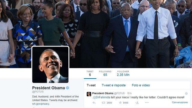 "Sono messaggi offensivi e disgustosi", ha detto Earnest e tuttavia sono anche il frutto del fatto che l'America è una società aperta. Siamo soddisfatti del risultato ottenuto nei primissimi giorni", ha detto Earnest notando che il grosso delle reazioni è stata positiva. Quanto a Jeff Gullickson, l'autore del messaggio che voleva Obama linciato, ha successivamente raccontato che la sua risposta su @Potus gli ha fatto guadagnare una visita del Secret Service.