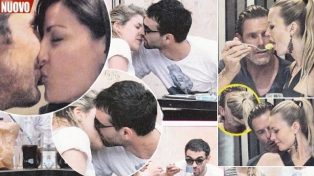 Primo Reggiani e Costanza Caracciolo, in una giornata di totale relax romano, si fermano per uno spuntino al bar e, prima dell'antipasto, arricchiscono il menù con tenerezze e baci infuocati. La ex velina senza trucco e casual è irresistibile e l'attore non si contiene.
