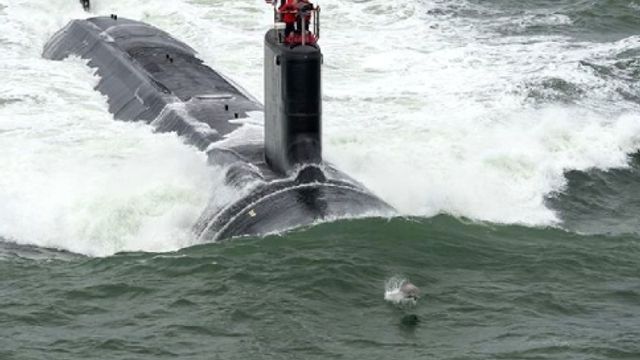 Un nuovo sottomarino d'attacco della Marina degli Stati Uniti, durante la fase di test al largo della costa di Newport, in Virginia, è stato scortato da una "guardia d'onore" davvero insolita. Un delfino ha accompagnato da vicino il gigante mezzo navale: con i suoi salti acrobatici il mammifero marino ha reso l'evento memorabile.