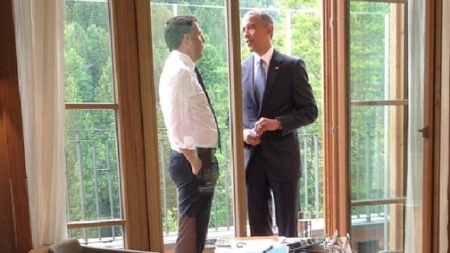 Ufficialmente Barack Obama non fuma più ma una foto tweettata dal portavoce di Matteo Renzi, Filippo Sensi, avrebbe sollevato dubbi in proposito: lo scrive Bild online, pubblicando la foto. Renzi e Obama sono immortalati mentre parlano a margine del G7 e "Obama ha un pacchetto sospetto fra le mani". Per il tabloid proprio questo scatto, twittato per "mostrare" il premier italiano e Obama "in conversazione", avrebbe dato adito a speculazioni: Obama fuma di nuovo?