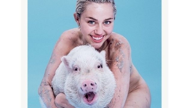 Miley Cyrus non finisce di stupire. Questa volta si è messa a nudo per il servizio di copertina del mensile americano "Paper". Un nudo particolare in quanto Miley è sporca di fango e abbraccia... la sua maialina Bubba Sue. E a dispetto dei doppi sensi che ne possono nascere, la Cyrus, che ha già dimostrato di essere anche molto autoironica, rincara la dose con una foto su Instagram dove indossa una maschera da maiale.