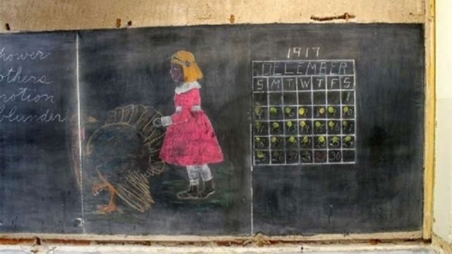 Durante i lavori di ristrutturazione alla Emerson High School di Oklahoma City, gli operai hanno fatto una scoperta sorprendente: dietro alle attuali lavagne sono state trovate le vecchie tavole usate un secolo fa. Per tutto questo periodo i disegni fatti allora sono rimasti intatti, nascosti dietro le pareti. E' possibile così osservare le lezione di matematica e di musica di quel periodo. Un portavoce del distretto scolastico ha assicurato che sono al lavoro per conservare i disegni a gessetto dell'epoca.
