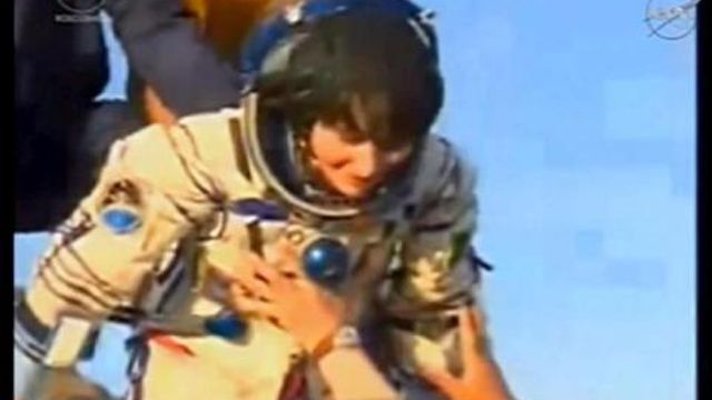 Samantha uscita da Soyuz - La Cristoforetti è stata l'ultima ad uscire dalla Soyuz, pochi minuti dopo l'atterraggio nelle steppe del Kazakistan. Appare frastornata, ma sorridente. Il comandante della Soyuz, Anton Shkaplerov, è stato il primo ad uscire dalla navetta, aiutato dal personale di soccorso.