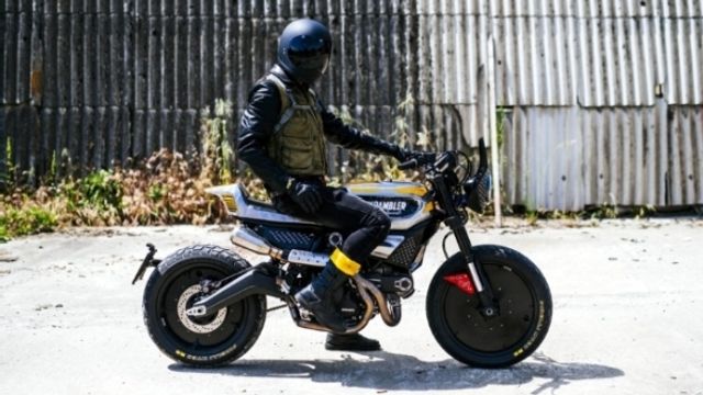 Mettere insieme Pirelli e Ducati per realizzare uno Scrambler davvero speciale. La nuova moto si chiama SC-Rumble ed è una vera special, cioè una moto unica. Nasce dalla creatività di Vibrazioni Art Design, azienda romagnola che ha modificato nel look e nella tecnica il nuovo Scrambler Ducati. Pirelli fornisce gli pneumatici, sviluppati appositamente per questa moto: Pirelli MT 60 RS di misura 110/80 R18 all'anteriore e 180/55 R17 al posteriore. Pneumatici montati su cerchi lenticolari.