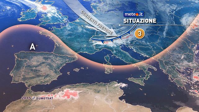 In attesa del ripristino di condizioni più estive, rimarremo alle prese con correnti nord-occidentali relativamente fresche che se da un lato manterranno un clima gradevole, dall'altro favoriranno alcuni episodi instabili, specialmente fra oggi e domani, a causa dell'ulteriore contributo della parte marginale di una perturbazione in scivolamento verso i Balcani. Da domenica 21, giorno del Solstizio d'Estate, il tempo diverrà in generale più stabile, specialmente al Centrosud, con temperature in progressiva ascesa, ma senza eccessi. A cavallo fra la fine di questo mese e l'inizio del prossimo si prospetta il ritorno dell'Anticiclone Nord-Africano accompagnato da aria sahariana che probabilmente si spingerà non sono verso l'area mediterranea ma anche sull'Europa continentale; naturalmente questa tendenza dovrà essere rivista e aggiornata nei prossimi appuntamenti.