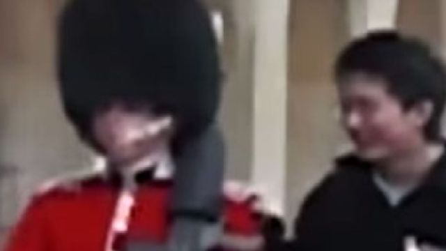 Le guardie reali sono disposte a subire di tutto durante i loro turni. Foto, boccacce e prese in giro da parte dei turisti. Mai però importunare uno degli uomini della regina toccandolo. La prova arriva proprio da Buckingham Palace, dove un ragazzo ha appoggiato la mano sulla spalla di una delle guardie. La reazione immediata: fucile puntato e urlo intimidatorio. E il turista se la dà a gambe.
