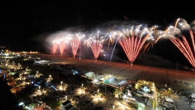 Fuochi d'artificio e sci sulla spiaggia - E a mezzanotte, su tutta la costa, l'appuntamento che oramai è divenuto un rituale della Notte Rosa, tutti con il naso all'insù per ammirare il cielo notturno accendersi con lo spettacolo di fuochi d'artificio in simultanea da Comacchio a Senigallia. Sci in estate sulla spiaggia? Tutto è possibile alla Notte Rosa 2015: nella zona del Portocanale di Igea Marina, venerdì sera i migliori atleti del freeski internazionale si esibiranno su una rampa alta 15 metri e larga 60 metri per il Bellaria Igea Marina Freestyle, dove si potranno anche testare tutte le novità per il prossimo inverno in fatto di attrezzature da sci.