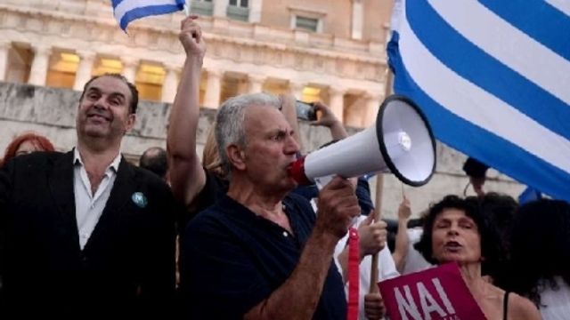 Parigi vuole che i negoziati con la Grecia riprendano in ogni caso, qualsiasi sia l'esito del referendum; Berlino definisce invece la politica di Tsipras "rigida e ideologica". Mentre il ministro francese Emmanuel Macron invita i governi Ue a non punire la Grecia come avvenne con la Germania dopo la seconda guerra mondiale, Angela Merkel ritiene che il premier greco stia "portando il suo Paese a sbattere contro un muro, ad occhi aperti".