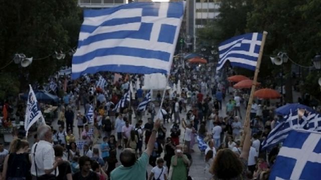 Il "No" vince il referendum greco sulla proposta dei creditori e, forti di oltre il 60% dei voti, i sostenitori della linea del premier Tsipras hanno iniziato a festeggiare. Dopo alcuni primi timidi caroselli per le strade, la folla ha iniziato a riempire piazza Syntagma mentre le tv davano ormai per scontata la vittoria del "No". Un'invasione pacifica di bandiere greche, mischiate a quelle di Syriza, il partito del primo ministro.