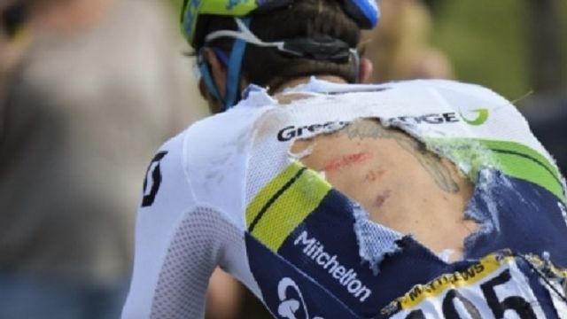 Dopo una sosta di alcuni minuti per permettere di soccorrere i ciclisti rimasti coinvolti nella rovinosa caduta, la gara è poi ripartita. Tre, al momento, i corridori ritiratisi: William Bonnet (FDJ), Tom Dumoulin (Giant) e Simon Gerrans (Orica). La neutralizzazione è terminata una volta passato il gran premio della montagna sul Cote de Bohisseau.