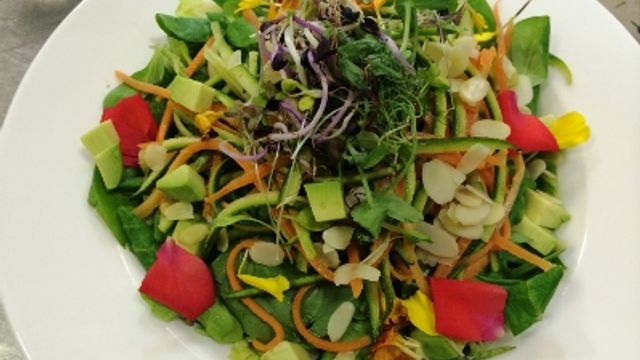 LA RICETTA: INSALATA D'ESTATE – (a cura del Margutta RistorArte – Roma). Tagliare a julienne 500 grammi di insalata mista, sogino e misticanza di primo taglio, 100 grammi di carote e marinare tutto con un limone biologico, sale integrale di Trapani e pepe. Si procede tagliando a cubetti un avocado e montando il piatto posizionando prima l'insalata e poi le verdure. Si aggiungono, infine, 200 grammi di mandorle a scaglie ed infine cubetti di avocado. Decorare con i petali di quattro fiori eduli e condire con olio extravergine d'oliva Leccino. òA RICETTA PASSO PER PASSO