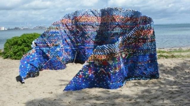 Un artista indiano ha raccolto in un anno 75mila tappi trovati nel suo quartiere. Con questa opera "Dropping and Dam(n)" denuncia il problema dello spreco e dell'inquinamento. E rende prezioso un materiale di scarto elevandolo ad arte di denuncia.