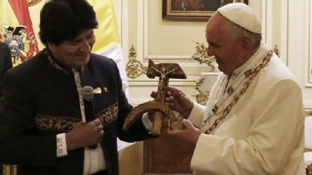 © -afp|Evo Morales dona al Papa un crocifisso su falce e martello