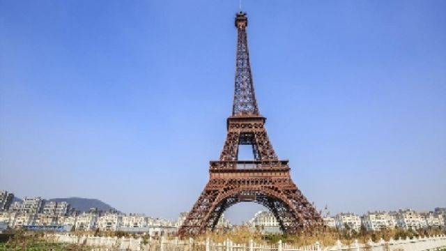 HANGZHOU, CINA - Situata in un sobborgo della città cinese di Hangzhou, questa copia carbone della Torre Eiffel, seppur ben fatta, non riesce di certo a replicare il fascino dell'originale vista così, immersa nella sterpaglia e circondata da anonimi palazzi.