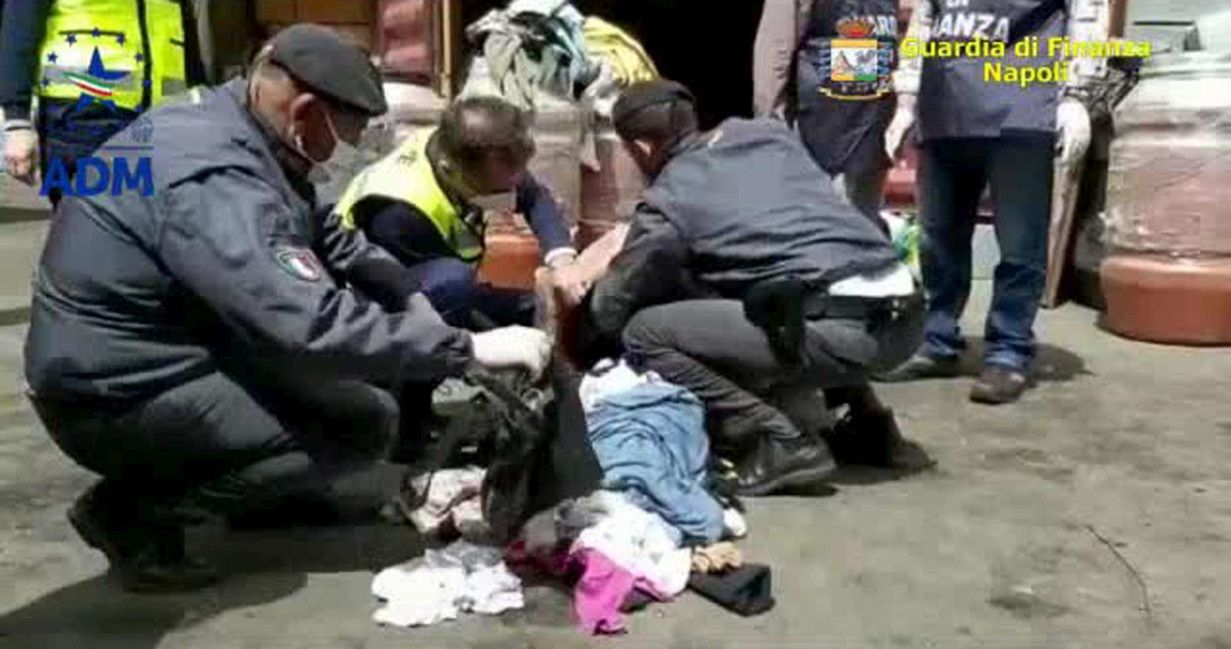 Elettrodomestici, pneumatici, indumenti e batterie - All'interno dei container, in particolare, sono stati scoperti, nascosti da autoveicoli e da fusti contenenti indumenti usati e in pessimo stato di conservazione, ingenti quantitativi di elettrodomestici e pneumatici fuori uso, balle di indumenti e scarpe non sanificati, nonchè 175 batterie per auto ed accumulatori per ripetitori telefonici non dichiarati e verosimilmente rubati.