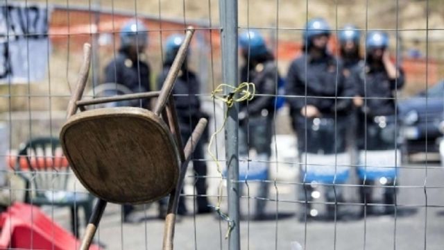 "No al centro immigrati", "andate via", "è un abuso di potere", queste le urla che i cittadini che hanno bloccano la strada e incendiato alcuni cassonetti durante le concitate fasi dell'arrivo degli immigrati. Alcuni dei manifestanti hanno il volto coperto. Oltre ai cassonetti sono state incendiate anche alcune balle di fieno, che erano in zona. Lanciati sassi contro gli agenti.