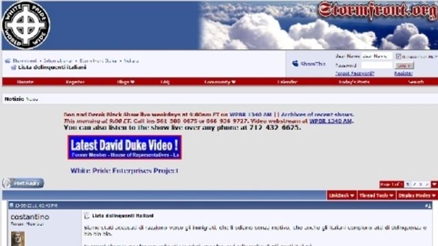 Il gup di Roma ha rinviato a giudizio 25 persone ritenute vicine al movimento di estrema destra Stormfront. Sono accusati di odio razziale, minacce e violazione della legge Mancino. Secondo il pm gli imputati avrebbero pubblicato sulla sezione italiana del forum di Stormfront post contro immigrati, ebrei e responsabili istituzionali.