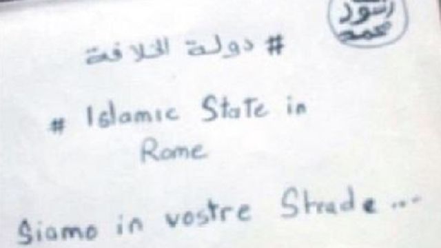 "Siamo nelle vostre strade. Siamo ovunque. Stiamo localizzando gli obiettivi, in attesa dell'ora X". Questi alcuni dei messaggi, in italiano, arabo e francese, su foglietti tenuti in mano e, sullo sfondo, luoghi simbolo come il Colosseo, il Duomo o la stazione di Milano. Immortalati anche mezzi della Polizia di Stato e della Polizia locale, fermate della metropolitana, tratti autostradali e bandiere dell'Expo.