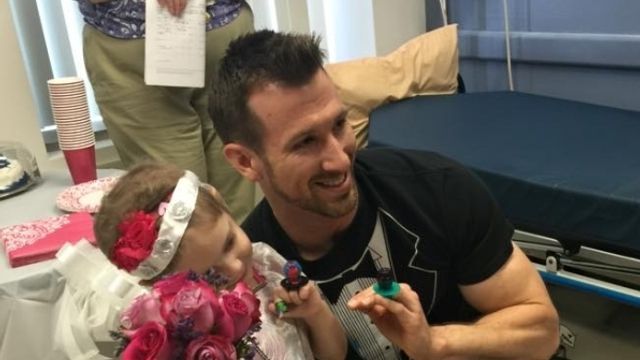 Un piccola paziente di un ospedale di New York ha coronato il suo sogno: sposare l'infermiere che si occupa di lei. Abby, 4 anni, affezionatissima a Matt Hickling, questo il nome del paramedico, è convolata a nozze con tanto di abito bianco e bouquet. L'uomo si è prestato volentieri al gioco, assecondando la richiesta della mamma della giovanissima paziente. A testimoniare la cerimonia, le foto pubblicate su Facebook dall'infermiere. "E' il giorno più bello della mia vita", ha detto la bambina, tornata in ospedale per il trattamento contro la malattia.