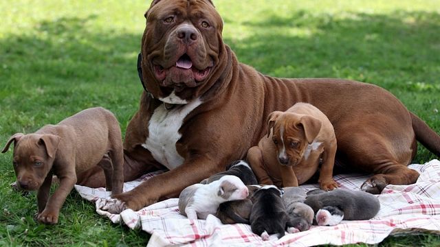 La telecamera gira intorno a questo cane ed è difficile credere che queste siano le sue vere dimensioni. sembra quasi uno scherzo della prospettiva. Ma quando l'immagine si sofferma sull'indicatore della bilancia ecco che tutto torna: questo pitbull pesa più di 80 chili, più del doppio del normale. Per questo ha guadagnato il titolo di "pitbull più grande del mondo". Non a caso si chiama Hulk ed è un bravissimo cane da guardia. Ora però ha scoperto anche il suo lato tenero. Hulk infatti è diventato l'amorevole papà di 8 splendidi cucciolotti.