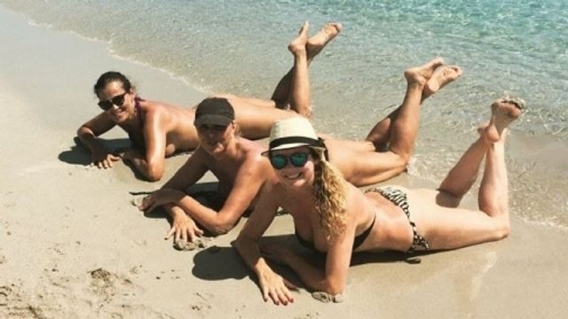 Stesa sulla spiaggia di San Teodoro in Sardegna in topless cinguetta felice. “Quando i miei pensieri sono ansiosi, inquieti e cattivi, vado in riva al mare, e il mare li annega e li manda via con i suoi grandi suoni larghi, li purifica con il suo rumore, e impone un ritmo su tutto ciò che in me è disorientato e confuso. Non si può essere infelice quando si ha l'odore del mare, la sabbia sotto le dita, l'aria, il vento" scrive Samantha De Grenet.