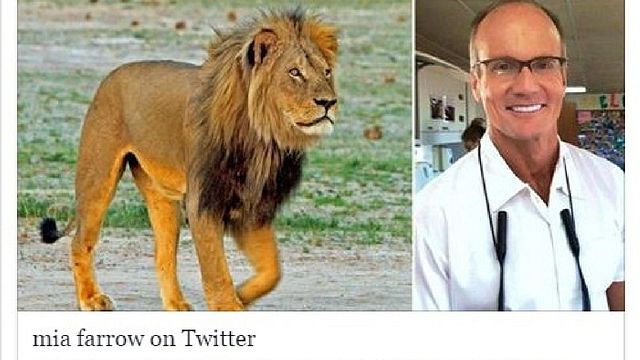Se il dentista americano che ha confessato di aver ucciso, nello Zimbabwe, il leone Cecil è assediato in casa sua da centinaia di animalisti inferociti, nella bufera per la vicenda è finita anche Mia Farrow. L'attrice ha infatti postato sui social network sia la foto sia l'indirizzo di casa del dentista, provocando le reazioni sdegnate del popolo della Rete. La Farrow ha quindi rimosso il post da Twitter, lasciandolo però su Facebook.