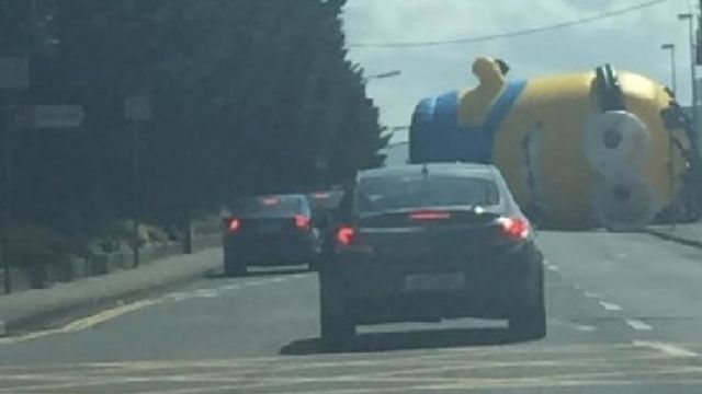 Un gigantesco minion alto dodici metri ha bloccato il traffico in una cittadina vicino a Dublino. Non si tratta di un'invasione da parte dei personaggi animati della saga "Cattivissimo me" ma di un gonfiabile sfuggito al controllo a causa del vento. Fortunatamente non ci sono state conseguenze per le persone. L'unico danno si è avuto allo specchietto retrovisore di un'auto.