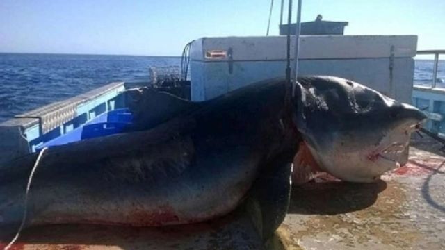 E' lungo sei metri l'esemplare di squalo tigre catturato nelle acque del Nuovo Galles del Sud, in Australia. Le foto sono state postate da Geoff Brooks: sul suo profilo Facebook ha scritto che lo squalo si trovava a 7 miglia al largo dalla costa di Lennox Head.