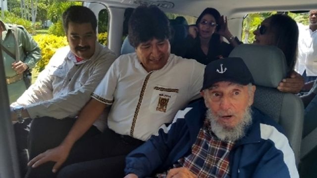Fidel Castro è riapparso in pubblico all'Avana nel giorno del suo 89.mo compleanno. Sono state diffuse fotografie del "lider maximo" cubano all'interno di una vettura insieme ai presidenti della Bolivia, Evo Morales, e del Venezuela, Nicolas Maduro. Le ultime immagini di Fidel Castro risalivano a luglio.