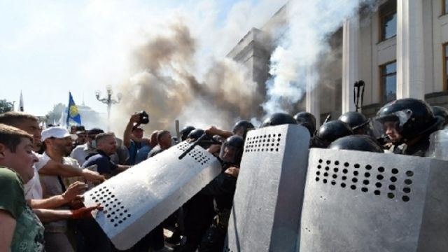 La protesta è scoppiata dopo che i deputati ucraini hanno approvato in prima lettura - con 265 voti a favore sui 226 richiesti e 87 contrari - una riforma costituzionale che conferisce una maggiore autonomia ai territori orientali filorussi in mano ai ribelli. La riforma riguarda in particolare il Donbass, dove da oltre un anno infervono gli scontri armati tra i separatisti appoggiati da Vladimir Putin e l'esercito di Kiev.